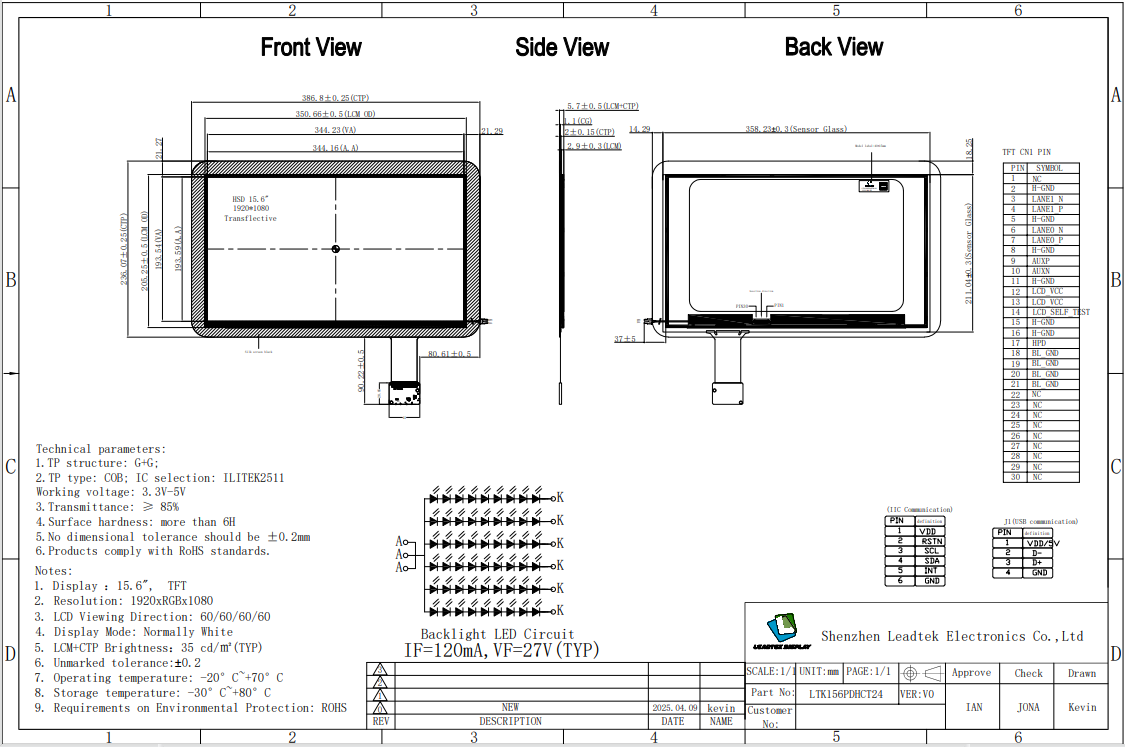 | Part Number. | LTK156PDHCT24-V0 |