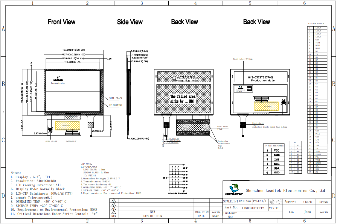 5.7 Inch 640*480 IPS TFT Touch Display with RGB Interface