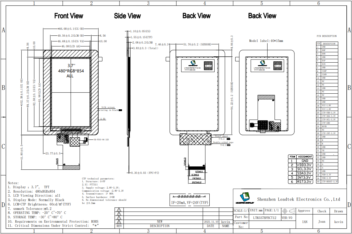 LTK037BFBCT12-V0は、エネルギー効率が高く汎用性の高いアプリケーション向けに設計された3.7インチ半透過型ディスプレイモジュールです。反射モードと透過モードを組み合わせることで、周囲光下でも低照度下でも視認性を維持します。IPSテクノロジーとMIPIインターフェースを搭載し、安定したパフォーマンスと一貫した表示品質を実現します。0.540mWという超低消費電力のため、バッテリー駆動デバイスに最適です。IICインターフェースを備えた統合型静電容量式タッチパネル(CTP)により、ユーザー操作性が向上します。-20℃~+70℃の広い動作温度範囲に対応しているため、スマートホーム、産業機器、インテリジェント交通システムなどのアプリケーションに最適です。