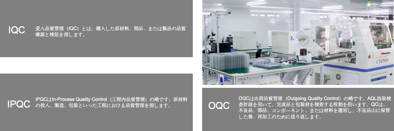 当社では、製品を出荷する前に、以下の各テストを実施し、最高の性能と信頼性を確保しています。製品によっては、以下に記載されていない追加の品質テスト工程を実施する場合もあります。
