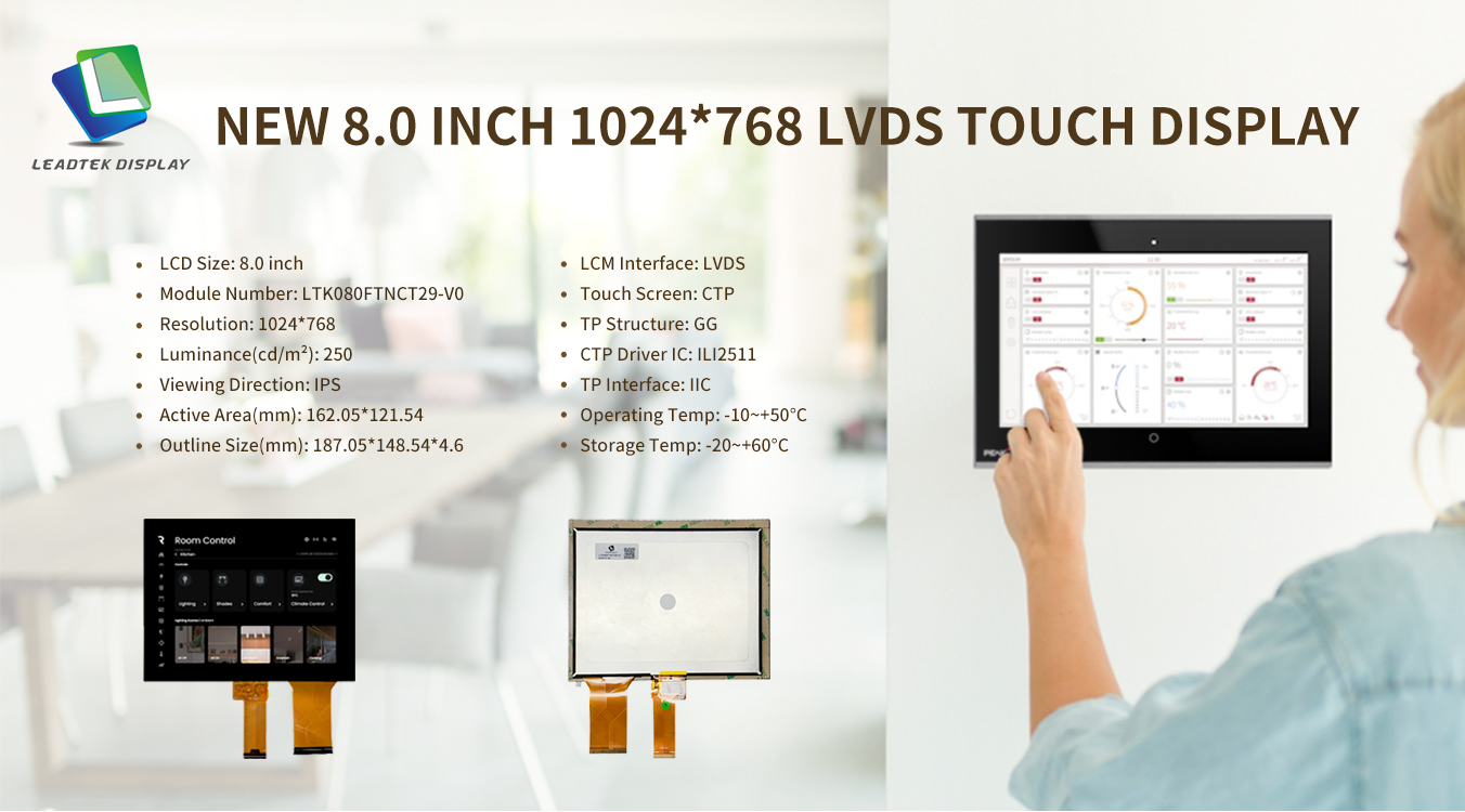 We are excited to introduce Leadtek 8.0-inch touch display,LTK080FTNCT29-V0 ,which is designed specifically for smart home control panels. With excellent visibility, responsive touch performance, and stable operation, it is an ideal choice for modern home automation systems.